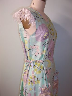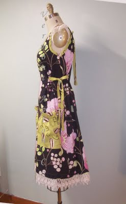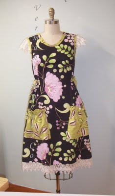 Here at Vermont Apron Co, they like to make new things a lot and this week they showed me a Housedress….I got sort of an in-house bulletin with a photo for you. A House dress, according to the bulletin is a loose fitting comfy dress that ladies can wear around the house and still look good enough to answer the door or run a quick errand. It’s basically a slip over the head deal with a few ties but there’s lace,too, so you got that pretty thing going on. So here you go… photos of our version of the Housedress, soon to be added to the website….(soon because of something about the shopping cart, models and stuff, I’m told). Anyways, here’s a few sneak peek photos for you.