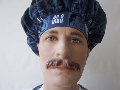 Frank looks good in hats, doesn’t he? I think it’s the moustache thing. Franks wears them at the Apron Co. This helps you see what they’ll look like.~Wes
